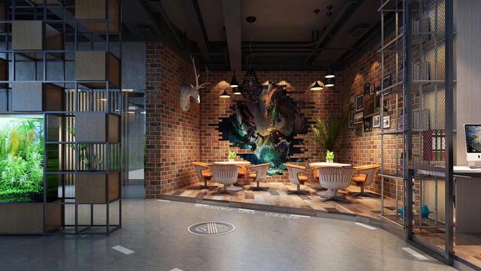 休息區域、茶水間的設計,設計師在設計的時候,將其安置在一起,兩兩融合的空間使空間的作用發揮到最大,工業風的注入為空間帶來了愜意、舒適的空間氛圍,讓員工在休息之余可以感受到來自企業的關心與愛護。