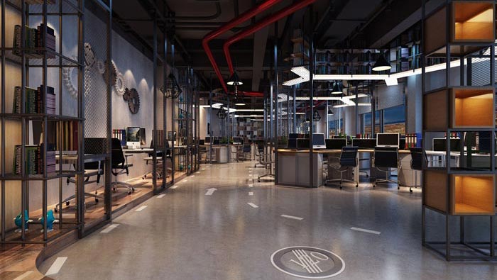 辦公區域的設計,設計師在設計的時候,采用1:2:7的設計手法,1分為單人辦公區、2分為動線、7分為開放式辦公區域,這樣的設計手法一方面可以使空間利用最大化,另一方面工業風融入室內之后,為空間帶來了一絲活力。