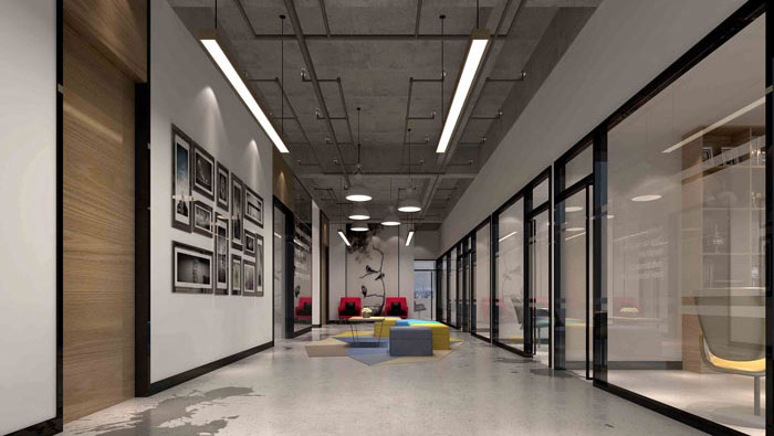 過道的設計,設計師在設計的時候,將休息桌椅安置在空間之中,在不影響空間實際需求的同時,為空間增加新的屬性——勞逸結合,也從側面讓客戶感受到企業的文化與人性化的管理。