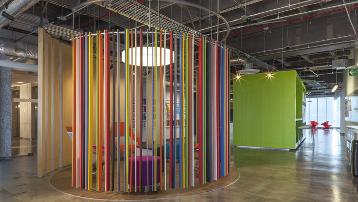 茶水間的設計:設計師在設計的時候,充分采用了放松的屬性,設計師希望為企業營造一個放松身心的空間,在設計師看來放松是企業必須需要重視的一個問題,只有放空才能裝進新的東西,只有這樣才能使員工不斷的成長,設計師希望通過這種不規則的空間來打破日常生活對于員工的束縛。