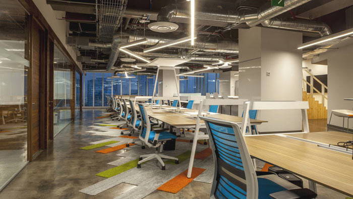 辦公區域的設計:設計師在設計的時候,對空間按照回字形進行設計,大空間圍繞小空間,這樣一方面可以滿足企業對于辦公工位數量的要求,另一方面可以在設計的時候,可以有效的避開空間的柱子與其他空間的障礙,讓辦公空間承載更多的需求。