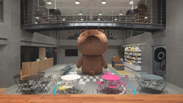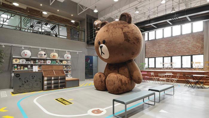 接待區域的設計:設計師在設計的時候,將其安置在展示區域的后方,這樣一來就可以利用具象化的卡通人物,其巨大的身形自然的為空間起到阻隔的作用,其次就是此處的氛圍充滿了溫馨、可愛的氣息,在這樣的氛圍中有利于彼此之間的交流,為客戶留下一個好的第一印象。
