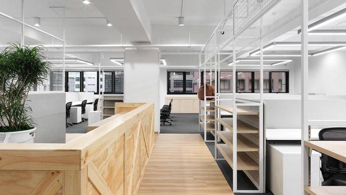 辦公區域的設計:設計師在設計的時候將其安置在二樓的一個獨立空間之中,在辦公空間的設計中,設計師采用展示與辦公結合的方式,在辦公工位的設計上,設計師根據實際情況進行布局與配置,設計師希望對每一位員工都一視同仁,展示區域的設計主要就是為了擺放綠植與產品準備的,讓辦公空間的內部環境煥然一新。