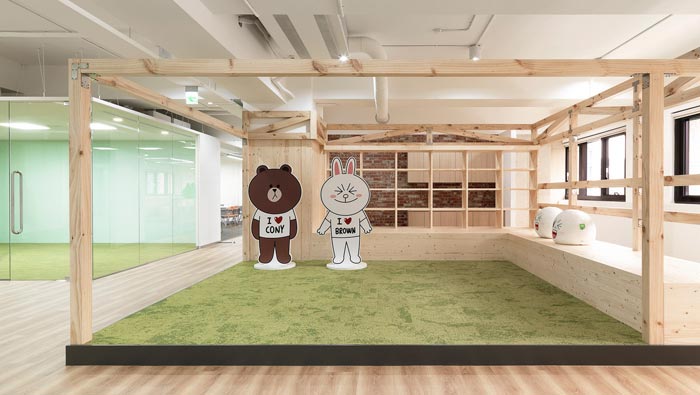 休息區域的設計:設計師在設計的時候,將其安置在一個開放性的獨立空間之中,說他是獨立性的,是因為空間四周都有框框架架,說他開放是因為雖然周圍有框框架架,但是卻沒有任何的阻礙,員工可以進出自由,在此處玩耍、嬉戲。