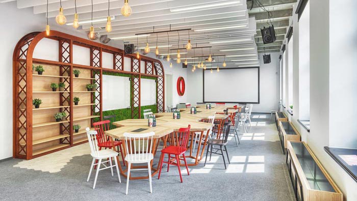 技術部門的設計:設計師在設計的時候,將其安置在一個靠近窗戶、靠近角落的區域,因為此處非常安靜而且采光極好,這樣可以保證技術人員在辦公的時候不會受到打擾,而且采光可以減輕他們的壓力,因為技術人員是一個相對枯燥的工作,所以設計師希望好的采光可以讓他們不出門就可以感受到大自然的饋贈。