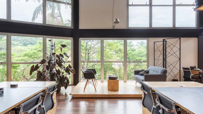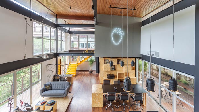 loft風(fēng)格辦公室設(shè)計:當(dāng)我們坐在空間中的時候,可以清楚的看到外界的風(fēng)景,這也是設(shè)計師設(shè)計的一部分,設(shè)計師希望通過這樣的設(shè)計模式,保持室內(nèi)的活力,讓勞逸結(jié)合融入到工作中去。