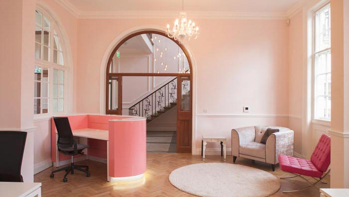 本次為化妝品公司辦公室裝修設計項目,設計師在于客戶交流的過程中,不斷聽到客戶對于“笑”的理解,因為在客戶看來笑容是最好的化妝品,正所謂笑一笑十年少,設計師也是女性,因此受到感染最為直接,故此設計師在設計中以熱情、創造、革新為驅動力,以求打造出與企業理念相融的辦公格局。