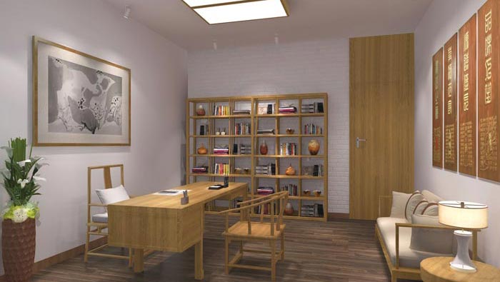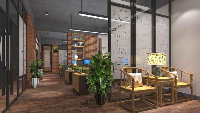 本次為現代中式風格辦公室裝修設計項目,此處項目為大學中文系辦公室,設計師在設計之初,就與校長和中文系的負責人做了一次深入的交流,在交流的過程中設計師了解到,校方希望打造一個適合中文創作的場所,校方希望將中文文化發揚光大,讓中文文化在此重見光彩。