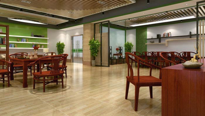 辦公區(qū)域的設計:此處與會議空間、品茶區(qū)域、閱讀區(qū)域融合在一起,設計師的目的就是希望打造一個多元化的空間,讓勞逸集合的理念融入到設計之中,讓員工在勞累的時候,可以通過飲茶和閱讀讓自己的心平靜下來,通過茶道達到以茶修身的境界,閱讀開拓員工的眼界與視野。