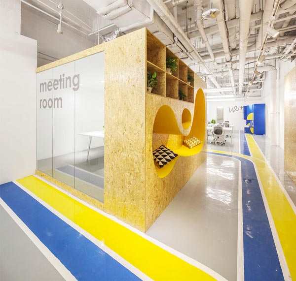 動線的設計:設計師在設計的時候,將白、黃、藍做為一種標示,一來有引導的作用、二來有劃分空間的作用,同時對于墻體的設計,設計師也是不與余力,設計師的目的就是希望將每一個部位都發揮到極致。