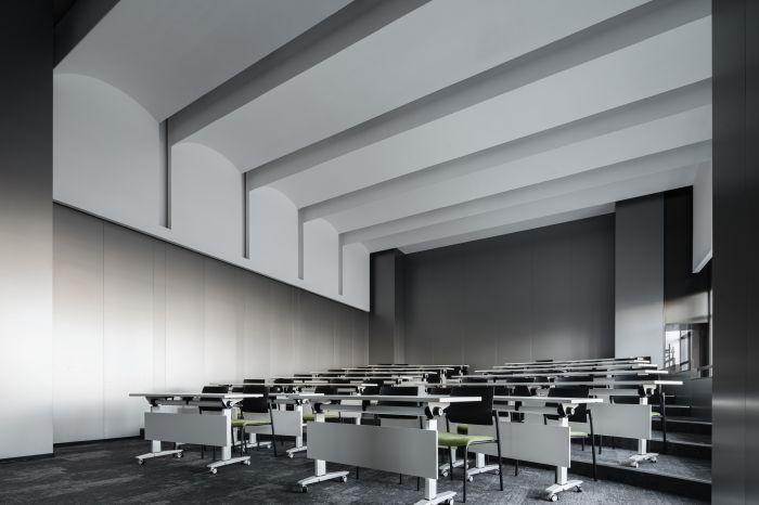 蘭天機械的園區(qū)主要分為廠區(qū)、宿舍樓和綜合辦公樓。綜合辦公樓共有九層,涵蓋企業(yè)接待、日常辦公、會議、健身休閑等多項功能。每層樓都有不同的布局和功能。第一層主要是接待大廳和大報告廳,提供高效的會議和商務接待服務;第二至四層則是設有大型會議室和健身房、閱讀室、母嬰室等多功能場所,可供員工休閑和活動使用;第五至八層則是辦公區(qū)域,分為多個辦公單元,為企業(yè)各職能部門提供適合的辦公空間。整座辦公樓不僅具有高品質(zhì)的設施和服務,而且也為員工提供了舒適的工作環(huán)境,是一個充滿活力和創(chuàng)新的辦公空間。