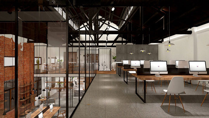 本次為創業公司復式辦公室裝修設計項目,業主租下的是一個小型舊工廠,在設計師的設計手法下,空間一份為二,分為上下兩層,既節約了成本,又擴大了辦公空間,將性價比發揮到最大。