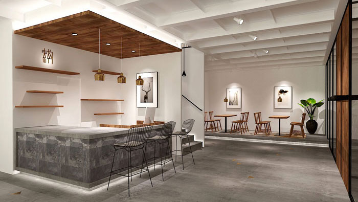 茶水間的設計,設計師在設計的時候,將其安置在二樓的轉點區域,一來這個空間本為空間的轉折點,具有向內凹凸的特性,利用茶水間的融入,其二向內的空間在先天上給人以舒適、愜意與溫馨之感。