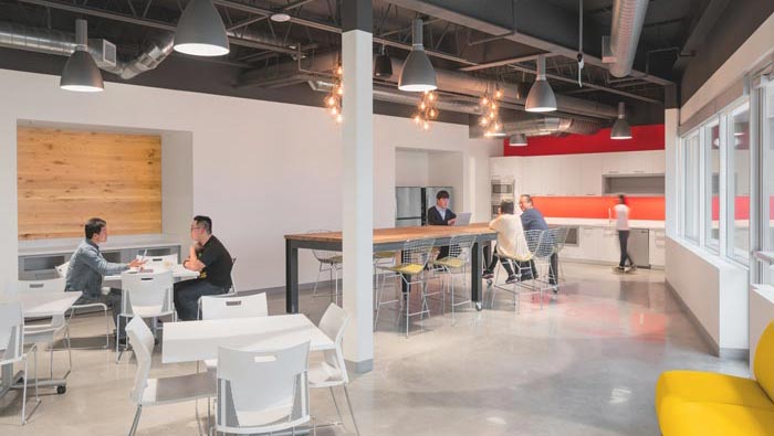 茶水間的設計:設計師在設計的時候,將其與休息、交談區(qū)域融合在一起,這是設計師設計的一貫作風,因為在設計師看來茶水間本身的氛圍就十分利于交談與休息,故此融合的空間是強強之間的聯(lián)合,既滿足了企業(yè)的需求,又在一定程度上提升了空間的質(zhì)量與屬性。
