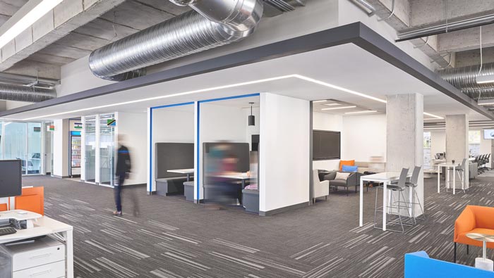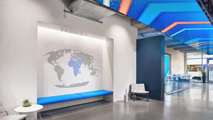茶水間、娛樂區(qū)域的設(shè)計(jì):設(shè)計(jì)師在設(shè)計(jì)的時候,將茶水間與娛樂區(qū)域進(jìn)行有機(jī)的結(jié)合,因?yàn)樵谠O(shè)計(jì)師看來彼此之間有一個共同的特性,就是創(chuàng)造一個無壓力的空間,設(shè)計(jì)師希望讓員工在此處可以休息、可以娛樂,在這樣的氛圍中從繁重的工作中解脫出來。