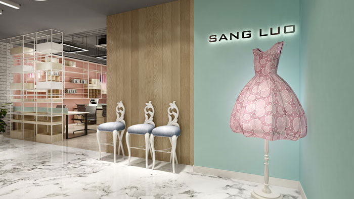 本方案為女裝公司辦公室裝修設計,企業(yè)的口號是既生動傳達了絲綢服裝具有的自然、環(huán)保、健康的信息,也形象描述了絲綢服裝獨特的柔軟高貴、華美典雅的品質(zhì),設計師在設計的時候從企業(yè)的實際需求出發(fā),粉紅色,粉色代表溫柔,一般多為女性喜愛,更加貼切、符合企業(yè)的產(chǎn)品。