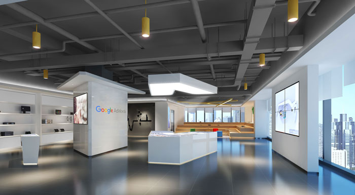 展示區域的設計,設計師采用的設計風格——簡潔,設計師認為干凈簡潔的展示區域,對于企業來說是一個新的起點和開始。