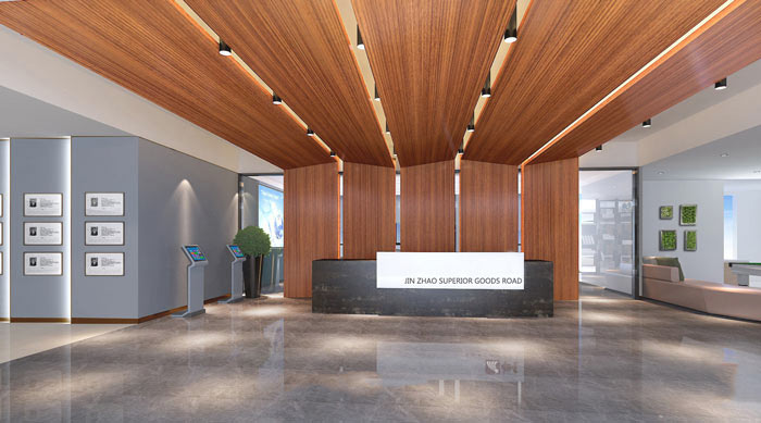 前臺(tái)空間的設(shè)計(jì):設(shè)計(jì)師在設(shè)計(jì)的時(shí)候,采用木飾面在空間中形成坐標(biāo)式的設(shè)計(jì),設(shè)計(jì)師希望讓客戶在進(jìn)入空間后,通過(guò)坐標(biāo)的引導(dǎo)可以直接尋找到空間的重點(diǎn)(企業(yè)品牌),以此形成空間的聚焦作用,不會(huì)因?yàn)殚_(kāi)放式的設(shè)計(jì)使空間產(chǎn)生分散的副作用。