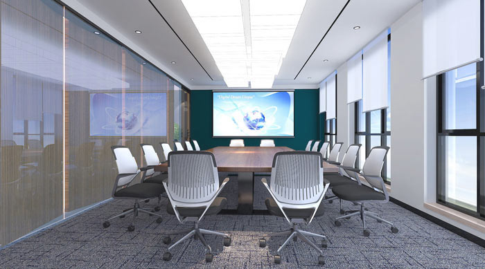 會(huì)議室的設(shè)計(jì):設(shè)計(jì)師在設(shè)計(jì)的時(shí)候,將空間安置在靠近窗戶的空間中,在設(shè)計(jì)師看來(lái)會(huì)議就是為了更好的解決問(wèn)題,以此讓企業(yè)不斷的得到發(fā)展,設(shè)計(jì)師希望光可以無(wú)時(shí)無(wú)刻的射入空間,在人迷茫的時(shí)候?yàn)槿苏樟燎斑M(jìn)的道路。
