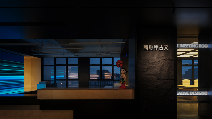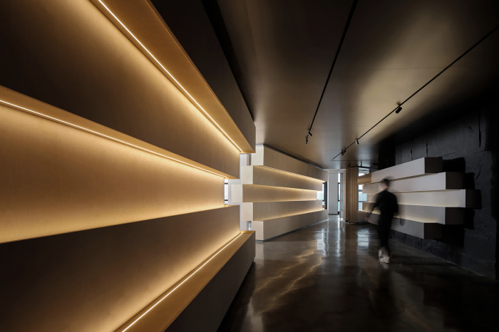 因為項目設于商源大廈的頂層,設計師提出了舍棄”前臺”與”門”的布局,把展廳和部分公共空間提升成為大廈的配套,可供其它樓層和友商們使用,因此釋放了更多可利用的空間,讓來賓無意識地便進入至甲古文的總部之中。