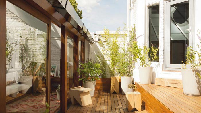 辦公區(qū)域的設(shè)計(jì):由于客戶需要一個(gè)安靜的區(qū)域進(jìn)行構(gòu)思與創(chuàng)作,故此設(shè)計(jì)師在設(shè)計(jì)的時(shí)候,在位置的選擇上選用了室內(nèi)、室外相互交接區(qū)域,在設(shè)計(jì)師看來(lái)人不能一直把自己關(guān)在屋子里面,為了更好地方便客戶創(chuàng)作,故此將室外、室內(nèi)融合是一個(gè)不錯(cuò)的構(gòu)想。