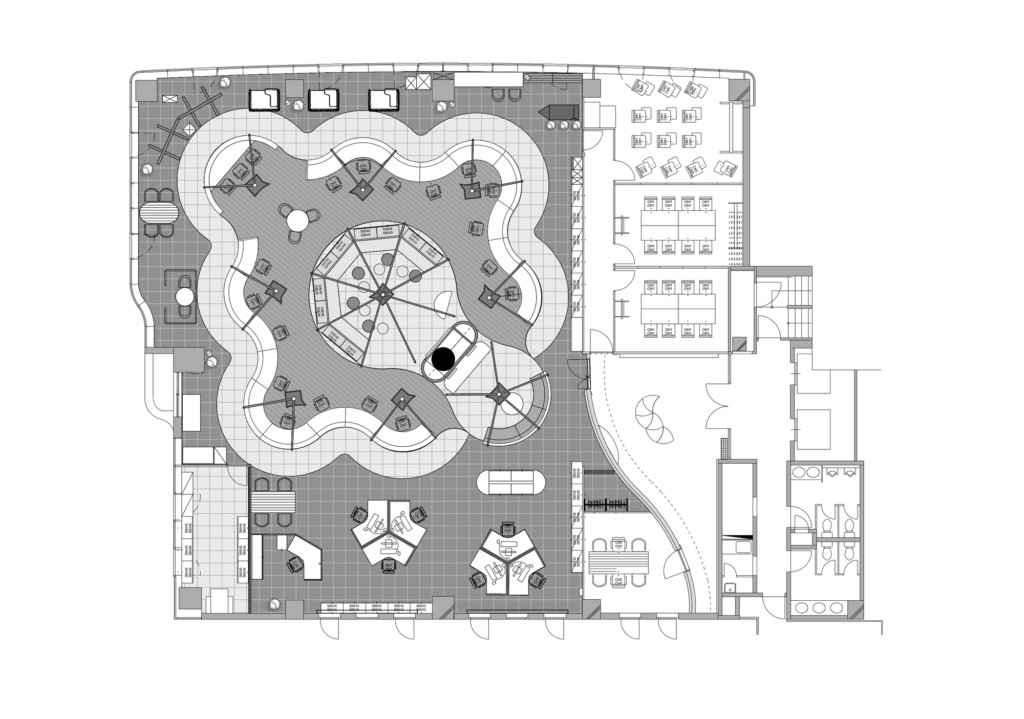 一個初始的C型,是常見的關鍵字,如“創造性和協作”,這是一個新的辦公環境所必需的,C形想象Landolt-C,我們是通過使C連續的序列。受此啟發,我們正在制定分區、結構和身份等。