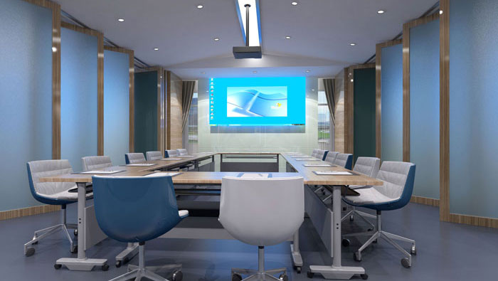 會議室的設計,設計師采用了簡潔明快的設計手法,整體空間給人以舒適的感覺,天花的造型簡潔而富有層次與韻律。