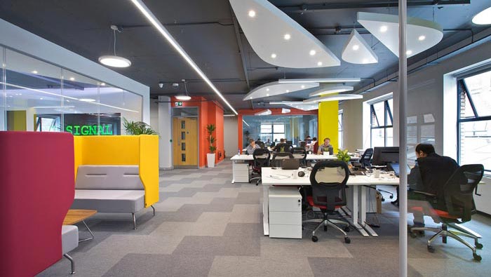 科技公司辦公室動線設計:設計師在設計的時候,將動線安置在左右空間的中心區域,這樣做的好處就是讓空間不會出現死角,在設計師看來空間最難以利用的就是空間的邊緣區域,在此次設計中這一點也被設計師巧妙的化解,保證空間與空間之間的融合。