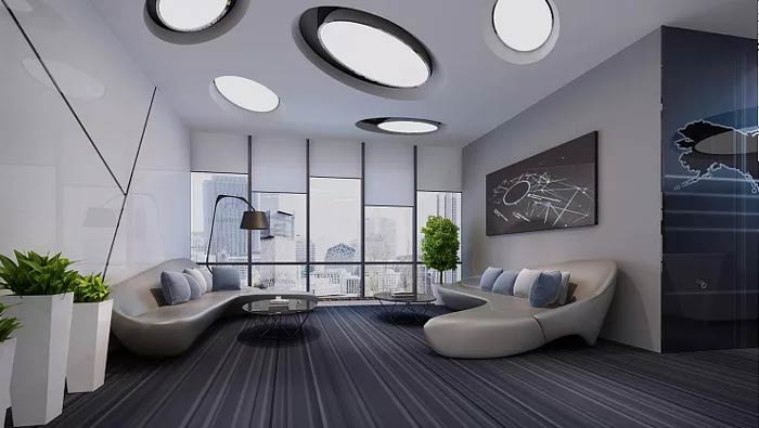 科技辦公室接待室設計:整個空間的生活意味相對較為濃重,這是希望讓客戶在這里感受到家一般的感覺,其中高檔、簡約、時尚的設計元素,更能體現(xiàn)公司的實力象征。