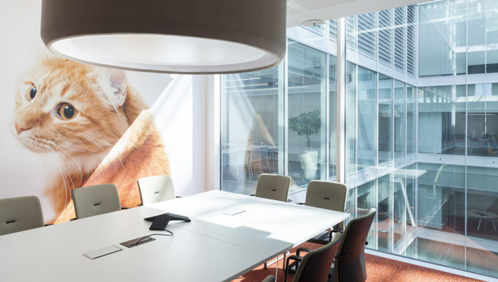 本次為寵物食品公司辦公室裝修設計效果圖,辦公室設計面積7700平方,設計師在辦公室設計中,以開放、簡潔、融合為辦公室設計關鍵詞,目的就是希望打造一個開放性的辦公空間。