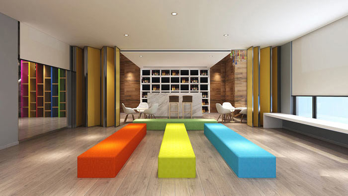 休息區域的設計,設計師在設計的時候,將茶水間、吧臺、洽談區域進行四位融合,在設計師看來有很多空間的可以進行有效的融合,這樣的融合往往是利大于弊的,融合在此處空間運用的最多,也是設計師對于設計師提升的一大見證。