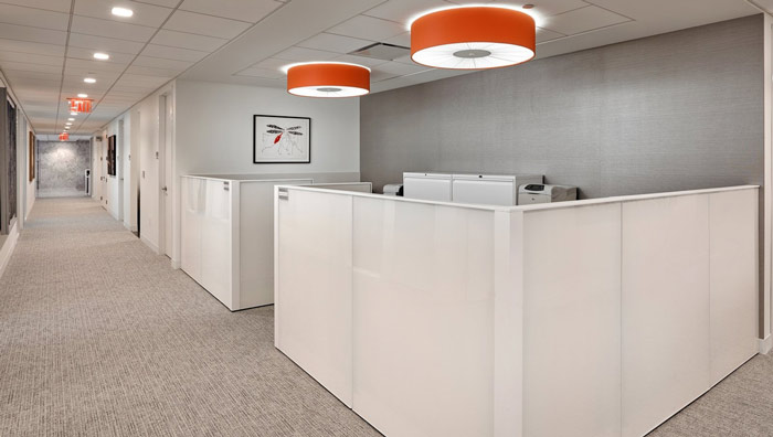 辦公室辦公區(qū)域設計:律師的日常工作是十分繁雜的,所以一個獨立的辦公場所也是必須的,設計師沒有將辦公區(qū)域安置在一起,而是有效的加以分離,讓相互之間不會受到打擾,坐與站的感受截然不同。