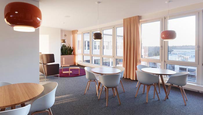 軟件公司辦公室休息區設計:設計師在設計的時候,將此處設置在向陽的空間之中,在設計師看來陽光是人類無法拒絕的誘惑,暖洋洋的陽光透過落地窗射入室內,為空間帶來了光明與溫暖,設計師希望讓員工可以放松自身,在暖洋洋的空間中尋找自我。