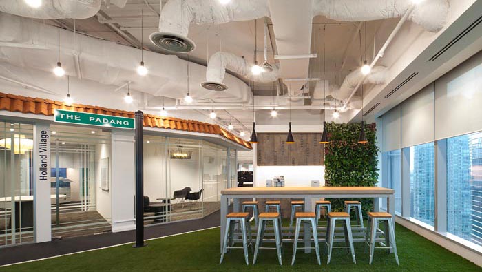 辦公室茶水間設計:設計師在設計的時候,對每一個過道重合之處基本上都設置了一個小型的茶水間,這樣可以有效的保證每一個區域的飲水與休息,這樣做的好處就是讓員工有了更多的選擇場所,不會顯得過于擁擠,同時此處也是客戶的休息場所。