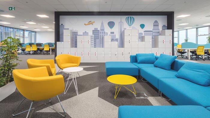 互聯(lián)網(wǎng)辦公室交流區(qū)設(shè)計(jì):此空間是一個(gè)輕裝飾、重軟裝的空間,在設(shè)計(jì)師看來空間不管如何設(shè)計(jì),對于人來說都有影響,只是影響的大小不同罷了,故此設(shè)計(jì)師希望打造一個(gè)毫無壓力的空間,讓員工可以在此處隨意的暢談,讓員工在彼此暢談之間增進(jìn)感情。