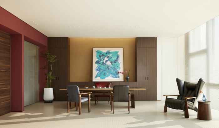 這是一個船運公司的辦公室設(shè)計。設(shè)計師通過思考空間、自然和使用者之間的關(guān)系,將空間定義為一個敘述者,通過動線和介質(zhì)的作用,傳遞生活態(tài)度。