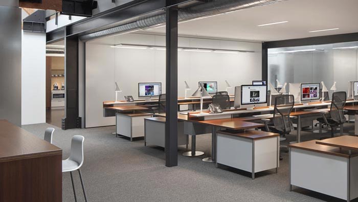 辦公室休息區(qū)設(shè)計(jì):此處位于二樓的過(guò)道區(qū)域,在這里設(shè)計(jì)師在過(guò)道的一邊,利用軟裝的便捷搭建了一個(gè)交流區(qū)域,這也顯示出設(shè)計(jì)師在藏與顯之間的駕重就輕。