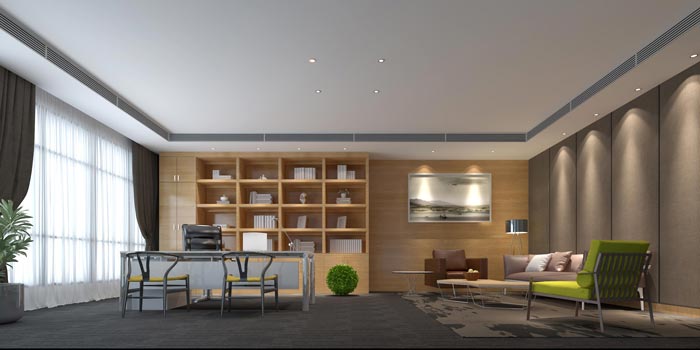 總經理辦公室的設計,設計師采用軟裝與硬裝之間的相互搭配進行設計,在硬裝設計之初,設計師就將軟裝的材料進行加工,硬裝和軟裝相互搭配在設計師手中達到完美。