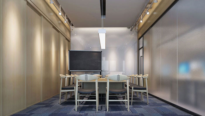 會(huì)議區(qū)辦公室的設(shè)計(jì),設(shè)計(jì)師將光效弄得特別亮,很有潮氣活力,很有層次感,有由淺至深地了解一個(gè)品牌的寓意。