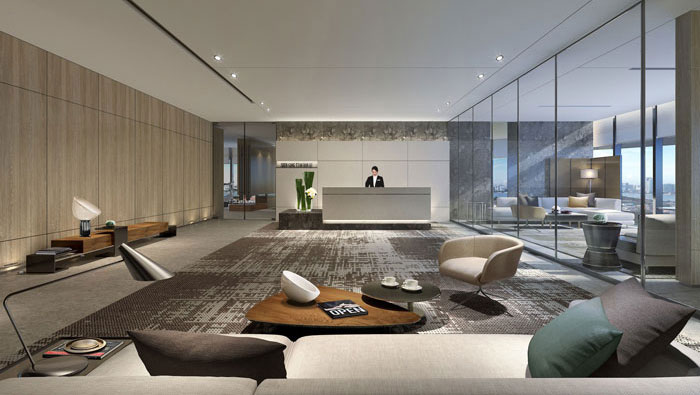 前臺的設計,設計師沒有過分的進行硬裝設計,這樣可以適當的減輕的硬裝的投入,設計師以軟裝為主題,讓空間簡潔、大氣。