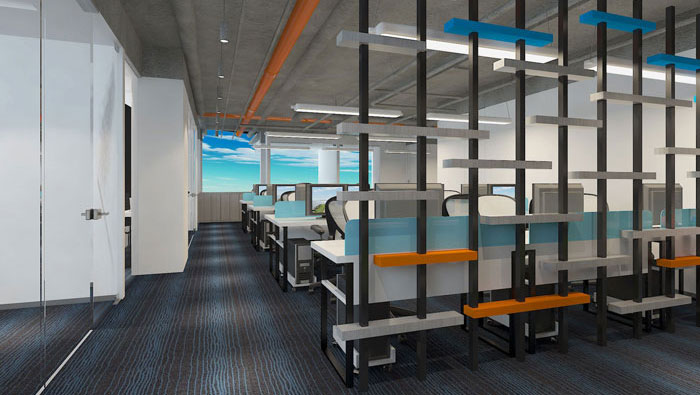 辦公區域的設計,設計師以燈光與玻璃之間的結合,制造了一種通透而獨特的視覺效果,把整個空間融合了在一起,在這里工作,也是一種享受吧!