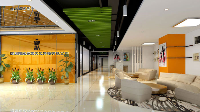 進門區域的設計,設計師主要采用方位的差距進行設計,一邊為LOGO與企業品牌,為企業做了很好的品牌展現,一遍則設計為接待區域,使空間得以合理的利用。