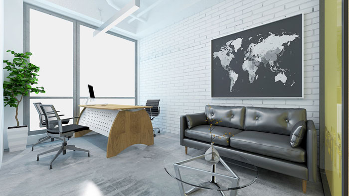 總經(jīng)理辦公室的設(shè)計(jì),落地窗與地圖都是其亮點(diǎn),落地窗可以很好的為空間帶來(lái)溫暖的陽(yáng)光,地圖主要鍛煉人的思維,寓意不管做什么都要有全局的眼光。