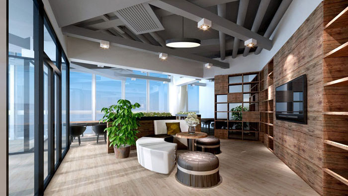 前臺(tái)過(guò)渡區(qū)域的設(shè)計(jì),設(shè)計(jì)師以無(wú)邊界為主題對(duì)空間進(jìn)行設(shè)計(jì),意在打造一個(gè)休閑、溫馨的辦公交流空間。