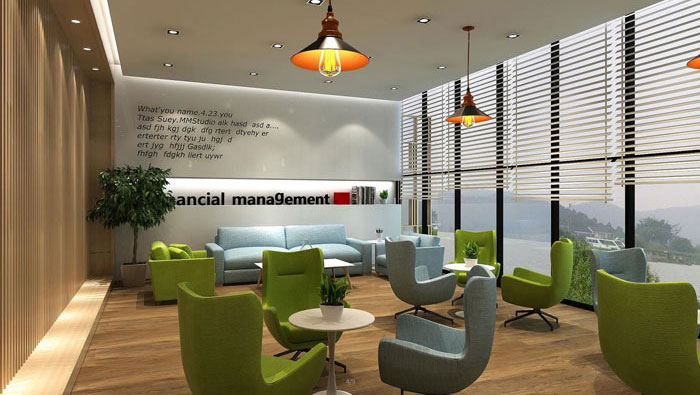 接待區域的設計,設計師將接待座椅配置在落地窗旁邊,一則可以觀賞室外風景,二則可以給空間增加了休閑、舒適的屬性。