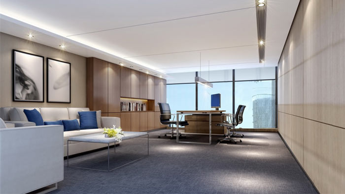 公司經(jīng)理辦公室設(shè)計(jì):由于空間的面積有限,所以開放式是唯一的選擇,設(shè)計(jì)師利用地毯代替了墻體,一切設(shè)計(jì)都在這方寸之間展開,有了界限,一切設(shè)計(jì)都有所依照。