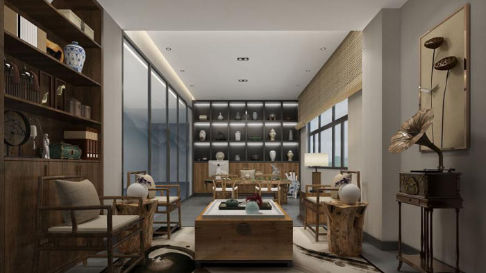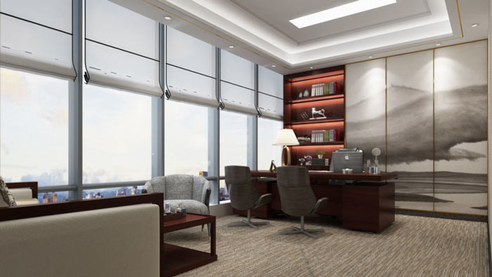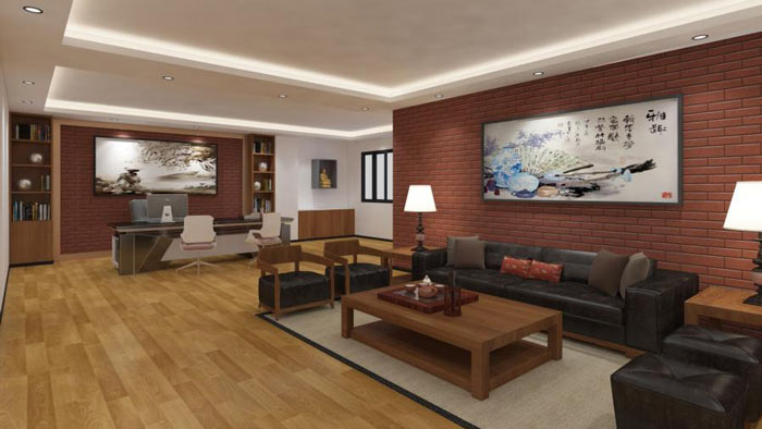 公司經(jīng)理辦公室設(shè)計(jì):每一個(gè)人都有自己的興趣愛好,總經(jīng)理也不外如是,此間主人喜歡書法、喜歡古典文學(xué),故此設(shè)計(jì)師在設(shè)計(jì)中,希望打造一個(gè)辦公兼容學(xué)習(xí)的辦公空間。