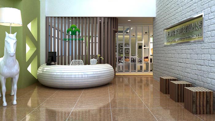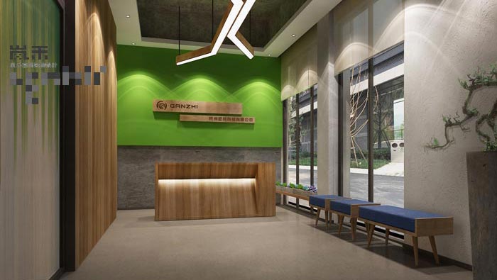 1000平方無人機公司辦公樓前臺:在本次設計中,設計師充分考慮到室外的景觀與室內的設計相配合,由于空間本身的特點,室內與室外的融合非常重要,不然會出現不倫不類的想象,設計師在思考之后最后以自然的顏色對前臺進行設計,這樣的設計對于室外、室內來說,均是相互契合。
