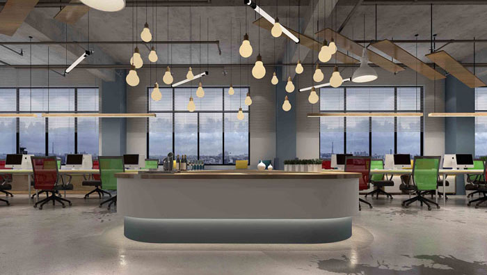 在電子商務辦公室前臺的設計中,設計師不僅要考慮空間自身的特點,同時還需要考慮企業自身的特點,最后還需要在其中加入時代的元素,讓辦公室為企業服務當下、迎接未來,因為電子商務的發展就是一個字——快,設計師希望在快速發展的過程中可以穩步的發展。